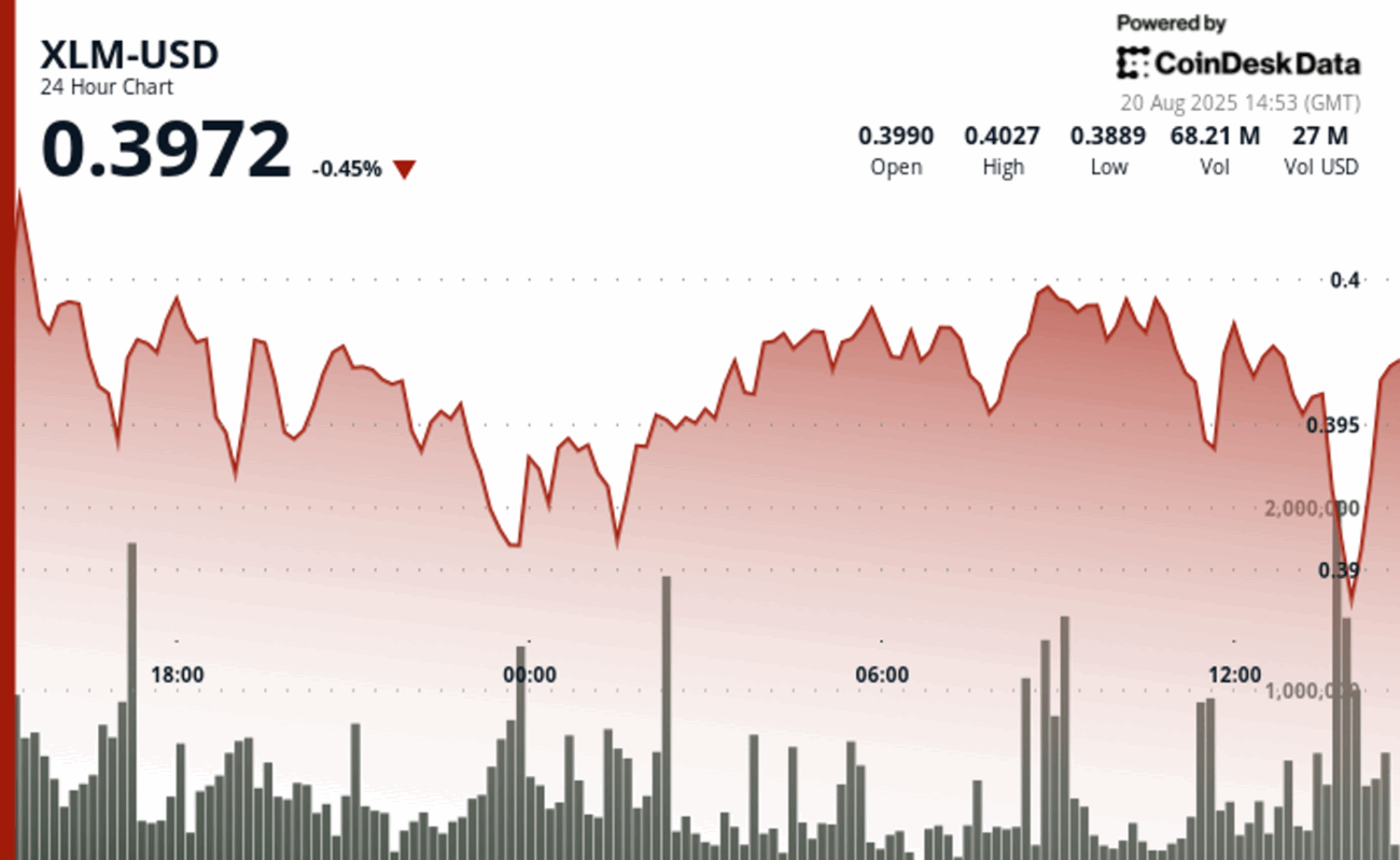 XLM slipped into a pronounced bearish trajectory over the past 24 hours, trading between $0.39 and $0.40 and breaking below key support levels. The token’s volatility intensified during the final trading hours of Aug. 20, when prices fell from $0.40 to $0.39, marking a decisive breach of support that had previously provided buying momentum. The move signals continued pressure on the asset despite its attempts to consolidate around the $0.40 threshold.
