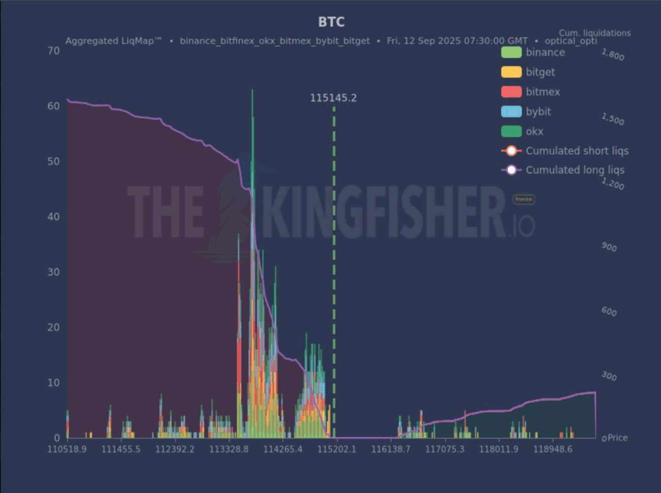 But the major liquidation risk is present to the downside, with data from The Kingfisher showing a large pocket of derivatives will be liquidated between $113,300 and $114,500, which could potentially prompt a liquidation cascade back to the $110,000 level of support.