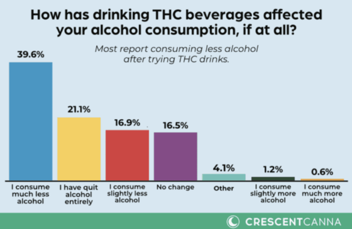 The poll from THC beverage company CrescentCanna, which surveyed its customers about their habits and behavioral trends, found that 77 percent of respondents said they’ve reduced the amount of alcohol they consume since using cannabis drinks.