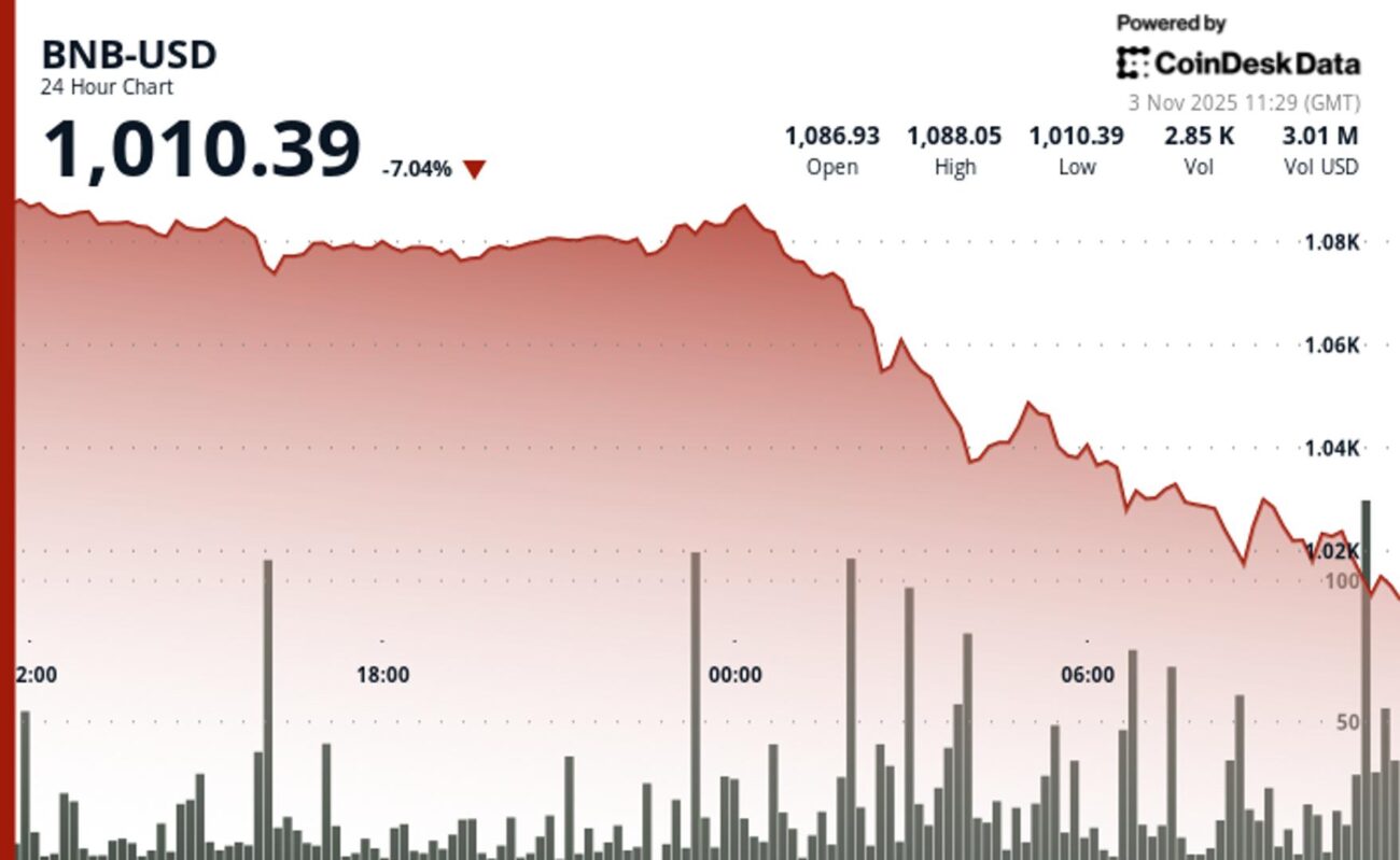 The breakdown occurred during a broader crypto market downturn, with BNB’s move possibly reflecting spillover effects from the decline.