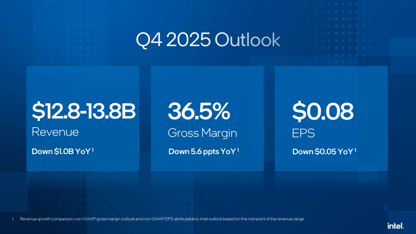 For the third quarter of 2025, Intel’s financial performance marked something of a return to form for the company, especially after the company’s brutal Q2’25 earnings and associated restructuring. With $13.7b in revenue for the quarter, Intel’s revenue was up 3% year-over-year, and 6% on a quarterly basis. Notably, this marks the third quarter in a row that Intel has beaten their quarterly revenue outlook, with Intel coming in about $100m ahead of their top-end estimate, and seemingly ahead of the street estimate, leading to the company being up 8% after hours.