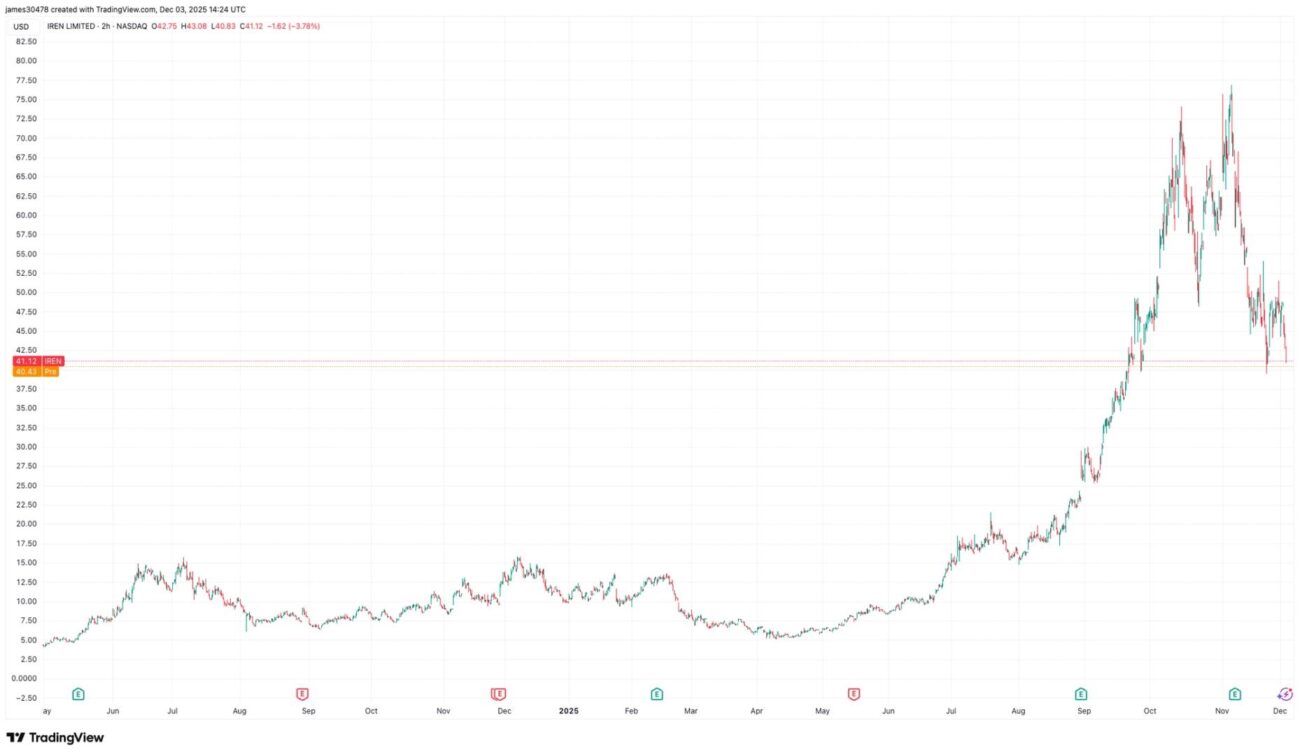 The bitcoin miner turned AI compute provider tumbled on Tuesday and is now down nearly 50% over the past month.