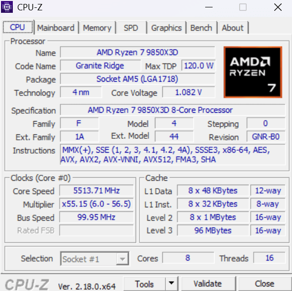 Ryzen 7 9850X3D Specifications