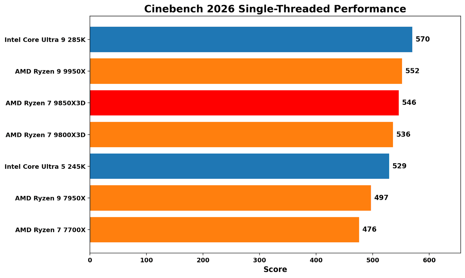 Cinebench 2026 single-threaded is still a clock and front-end-heavy contest, and currently Intel’s 285K sits around 3% ahead of the Ryzen 9 9950X. In terms of the Ryzen 7 9850X3D, it’s around 4% slower than the 285K, while the increase on boost with speeds of up to 5.6 GHz offers around 2% additional single-threaded performance than the Ryzen 7 9800X3D.